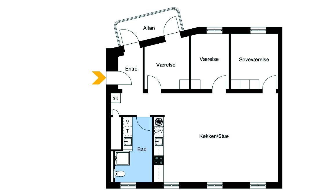 Lejligheden er indrettet med entré, dejlig lyst og stort køkken alrum med alle hårde hvidevarer, som er i åben forbindelse til stuen. Alle lejligheder er med store vinduespartier og med fokus på godt lysindfald. Lejlighederne har store soveværelser, og yderligere værelser af god størrelse. Lejligheden har et stort badeværelse med bruseniche samt vaskemaskine og tørretumbler.
